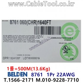 벨덴케이블 BELDEN 8761, 500m, 1Pair 22AWG, 오디오, 제어 & 계장용 케이블