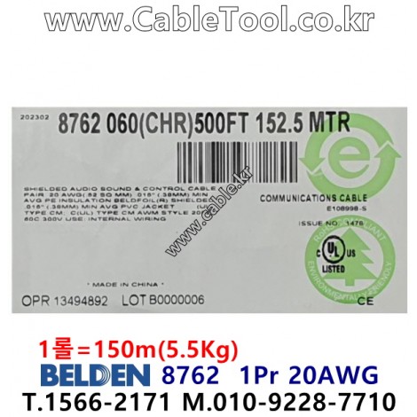 | 제조자 | 벨덴케이블 BELDEN Cable 한국총판 케이블툴㈜ www.CableTool.co.kr |