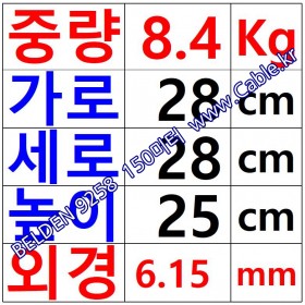 150m(롤 ₩723,000 ) 벨덴9258 (₩4,820/m) 벨덴케이블 9258 동축케이블 1C 16AWG RG-58 50옴 (블랙) BELDEN 9258