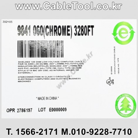 | 제조자 | 벨덴케이블 BELDEN Cable 한국총판 케이블툴㈜ www.CableTool.co.kr |