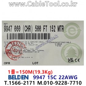 150m(롤) 벨덴9947 미터당 ₩37,700 벨덴케이블 9947 BELDEN 9947 15C 22AWG