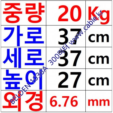 300m(롤) 벨덴1036A (미터당 ₩10,290) 벨덴케이블 1036A BELDEN 1036A 1Triad 18AWG Multi Conductor 블랙 > 벨덴케이블 Multi Conductor| 품명 | 상품페이지 참고 |