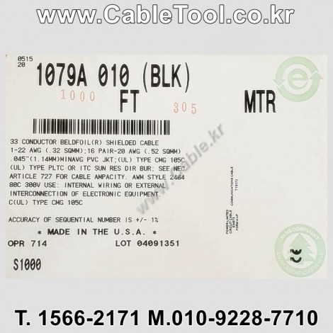 300m(롤) 벨덴1079A (미터당 ₩14,660) 벨덴케이블 1079A BELDEN 1079A 16Pair 20AWG UL/CSA 300V계장용 블랙 > 벨덴케이블 UL/CSA 300V계장용| 품명 | 상품페이지 참고 |