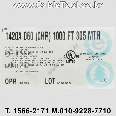 | 제조자 | 벨덴케이블 BELDEN Cable 한국총판 케이블툴㈜ www.CableTool.co.kr |