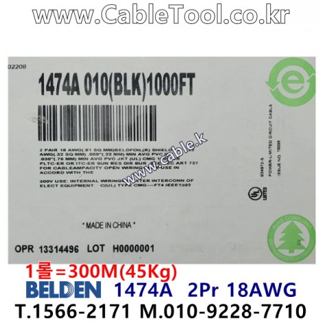 300m(롤) 벨덴1474A (미터당 ₩9,040) 벨덴케이블 1474A BELDEN 1474A 2Pair 18AWG Paired 블랙 > 벨덴케이블 Paired | 품명 | 상품페이지 참고 |
