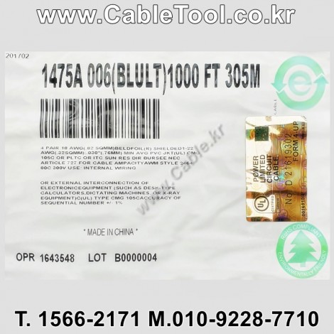 벨덴케이블 1475A BELDEN (Blue 300m) > 벨덴케이블 UL/CSA 300V계장용| 품명 | 상품페이지 참고 |