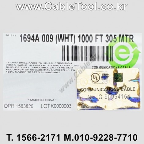 300m 벨덴1694A (미터당 ₩1,990) 벨덴케이블 1694A BELDEN 1694A 1C 18AWG RG6 75옴 동축케이블 화이트 > 벨덴케이블 RG6 75옴 동축케이블| 품명 | 상품페이지 참고 |