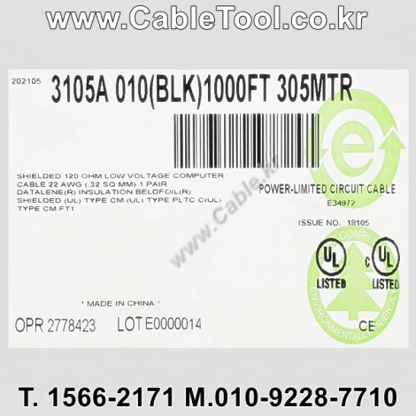 | 제조자 | 벨덴케이블 BELDEN Cable 한국총판 케이블툴㈜ www.CableTool.co.kr |