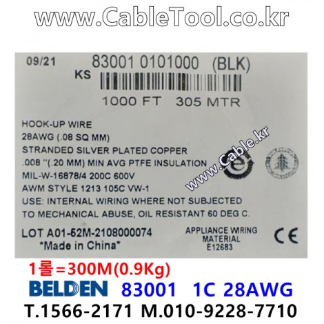 벨덴케이블 BELDEN 83001 Black(010) (300m) > 벨덴케이블 Hook Up Wire| 품명 | 상품페이지 참고 |