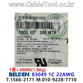 벨덴케이블 BELDEN 83049 002(Red), 300m, 1C 22AWG, UL 1371, NEMA HP3, MIL-W-16878/6 Type ET, 250V 200℃