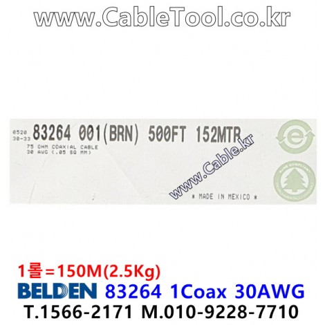 150m(롤) 벨덴83264 미터당 ₩13,000 벨덴케이블 83264 BELDEN 83264 1C 30AWG RG CABLE 동축케이블 > 벨덴케이블 RG Cable 동축케이블| 품명 | 상품페이지 참고 |