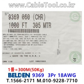 300m 벨덴9369 (미터당 ₩21,210) 벨덴케이블 9369 BELDEN 9369 3Pair 18AWG UL/CSA 300V계장용 크롬
