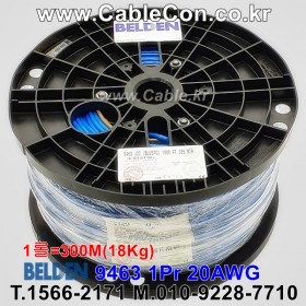 300m(롤) 벨덴9463 미터당 ₩4,210 벨덴케이블 9463 BELDEN 9463 1Pr 20AWG BLUE HOSE