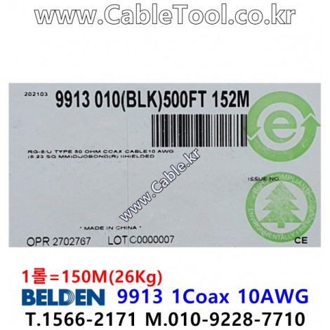 150m(롤) 벨덴9913 미터당 ₩9,600 벨덴케이블 9913 BELDEN 9913 1C 10AWG RG-8 > 벨덴케이블 RG8 50옴 동축케이블| 품명 | 상품페이지 참고 |