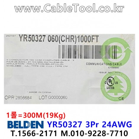 300m(롤) 벨덴YR50327 (미터당 ₩10,000) 벨덴케이블 YR50327 BELDEN YR50327 3Pr 24AWG Paired > 벨덴케이블 Paired | 품명 | 상품페이지 참고 |