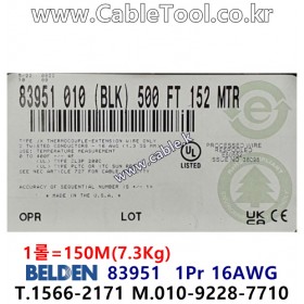 벨덴케이블 BELDEN 83951, 150m, 1Pr 16AWG, Type JX Thermocouple Extension Cable, NEC/UL CL3P, PLTC, ISA MC 96.1-1982 Type JX