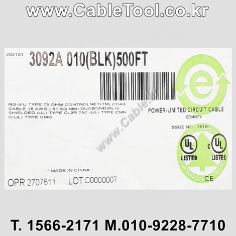 150m(롤) 벨덴3092A (미터당 ₩2,800) 벨덴케이블 3092A BELDEN 3092A 1C 18AWG RG6 ControlNet > 벨덴케이블 ControlNet | 품명 | 상품페이지 참고 |