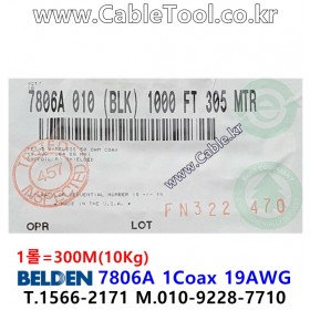 300m(롤) 벨덴7806A (미터당 ₩5,050) 벨덴케이블 7806A BELDEN 7806A 1Coax 19AWG RF 195 동축케이블 블랙