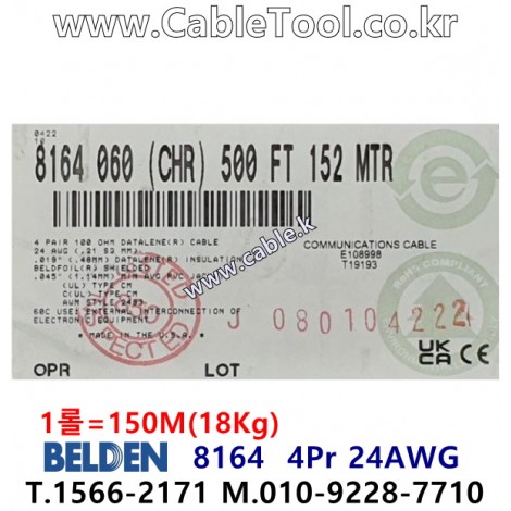 150m(롤) 벨덴8164 (미터당 ₩10,000) 벨덴케이블 8164 BELDEN 8164 4Pair 24AWG RS422 크롬그레이 > 벨덴케이블 RS422 | 품명 | 상품페이지 참고 |