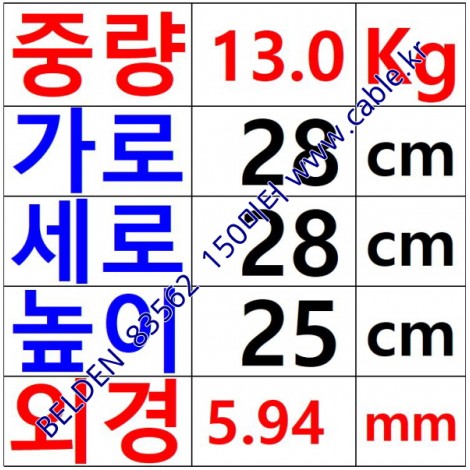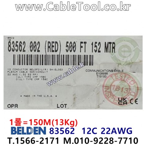 150m(롤) 벨덴83562 (미터당 ₩87,530) 벨덴케이블 83562 BELDEN 83562 12C 22AWG Plenum 자켓 CMP 레드 > 벨덴케이블 Plenum 자켓 CMP | 품명 | 상품페이지 참고 |