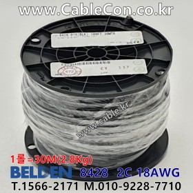 30m(롤) 벨덴8428 미터당 ₩11,470 벨덴케이블 8428 BELDEN 8428 2C 18AWG 마이크, 악기