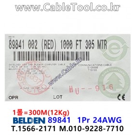 300m 벨덴89841 (미터당 ₩17,900) 벨덴케이블 89841 BELDEN 89841 1Pair 24AWG RS485 레드