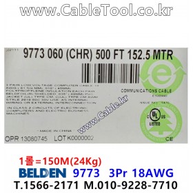 150m(롤) 벨덴9773 미터당 ₩8,200 벨덴케이블 9773 BELDEN 9773 3Pr 18AWG 오디오멀티 UL/CSA 300V계장용