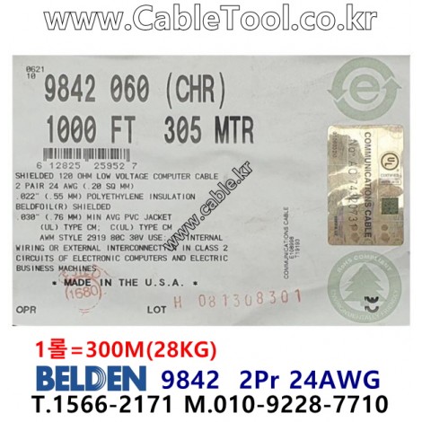 300m(롤) 벨덴9842(USA) 미터당 ₩5,500 벨덴케이블 9842(USA) BELDEN 9842(USA) 2Pr 24AWG RS-485 > 벨덴케이블 RS485 | 품명 | 상품페이지 참고 |