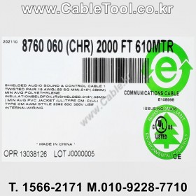 벨덴케이블 BELDEN 8723, 1000m, 2Pair 22AWG 벨덴 1000M 22AWG, CM, UL1685 UL Loading