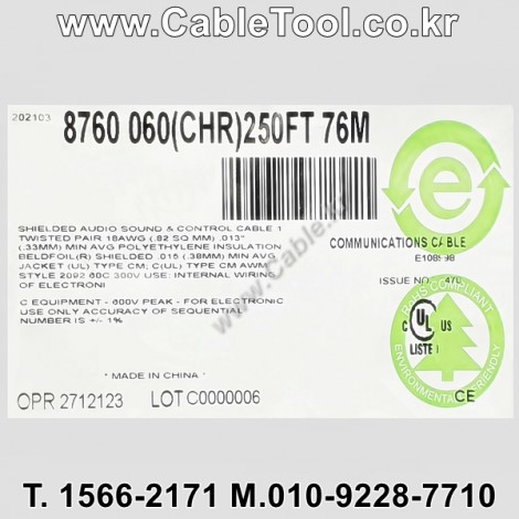 | 제조자 | 벨덴케이블 BELDEN Cable 한국총판 케이블툴㈜ www.CableTool.co.kr |