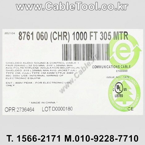 | 제조자 | 벨덴케이블 BELDEN Cable 한국총판 케이블툴㈜ www.CableTool.co.kr |