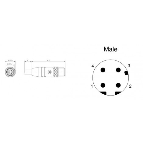 Cat5e 고속이더넷, M12 (Male) 단일 종단 코드셋, 2x2x0.34mm² PUR Green Cable
