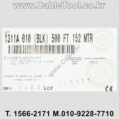 150m(롤) 벨덴1311A (미터당 ₩9,540) 벨덴케이블 1311A BELDEN 1311A 2C 12AWG 4N 무산소동선 스피커 케이블 > 벨덴케이블 무산소동선| 품명 | 상품페이지 참고 |