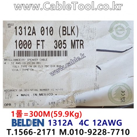 300m(롤) 벨덴1312A (미터당 ₩32,950) 벨덴케이블 1312A BELDEN 1312A 4C 12AWG 무산소동선 블랙 > 벨덴케이블 무산소동선| 품명 | 상품페이지 참고 |