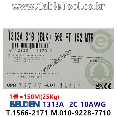 150m(롤) 벨덴1313A (미터당 ₩11,790) 벨덴케이블 1313A BELDEN 1313A 2C 10AWG Multi Conductor 블랙 > 벨덴케이블 Multi Conductor| 품명 | 상품페이지 참고 |