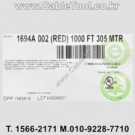 300m(롤) 벨덴1694A (미터당 ₩1,990) 벨덴케이블 1694A BELDEN 1694A 1C 18AWG RG6 75옴 동축케이블 레드
