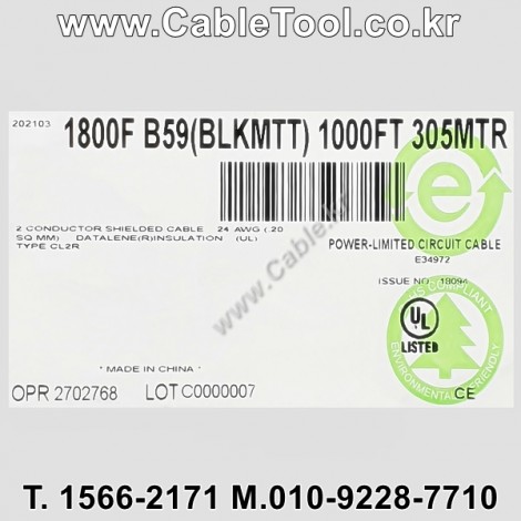 | 제조자 | 벨덴케이블 BELDEN Cable 한국총판 케이블툴㈜ www.CableTool.co.kr |