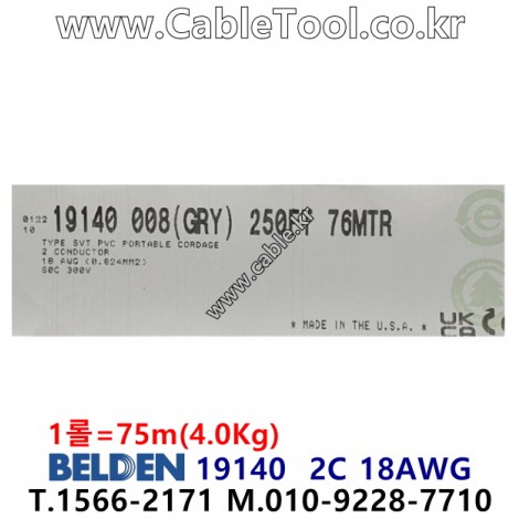 76m(롤) 벨덴19140 (미터당 ₩9,800) 벨덴케이블 19140 BELDEN 19140 2C 18AWG 파워 Multi Conductor (그레이) > 벨덴케이블 파워| 품명 | 상품페이지 참고 |