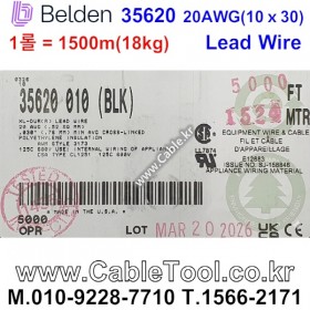 1,500m(롤) 벨덴35620 미터당 ₩5,000 벨덴케이블 35620 BELDEN 35620 Lead Wire 20AWG HookUP Wire 블랙