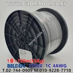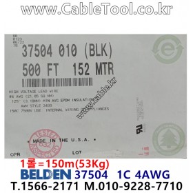 벨덴케이블 BELDEN 37504, Black, 150m, 1C 4AWG, UL AWM 3499, 7500V, 150°C, Rubber Lead Wire 케이블