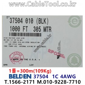 벨덴케이블 BELDEN 37504, Black, 300m, 1C 4AWG, UL AWM 3499, 7500V, 150°C, Rubber Lead Wire 케이블
