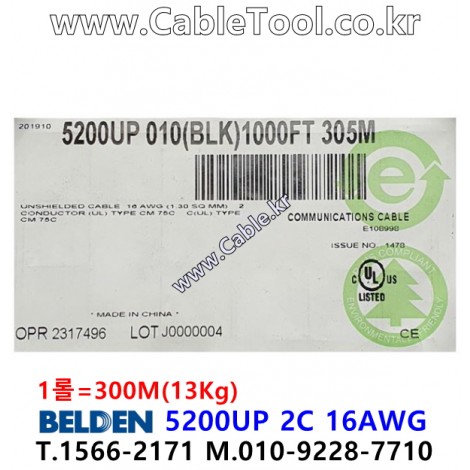 300m(롤) 벨덴5200UP (미터당 ₩1,850) 벨덴케이블 5200UP BELDEN 5200UP 2C 16AWG 스피커케이블 > 벨덴케이블 고전도구리| 품명 | 상품페이지 참고 |