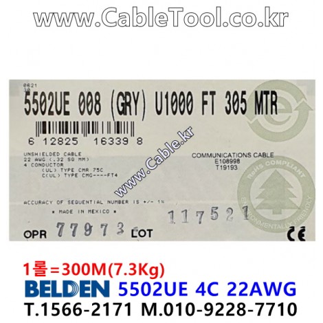 300m(롤) 벨덴5502UE (미터당 ₩2,150) 벨덴케이블 5502UE BELDEN 5502UE 4C 22AWG Security & Alarm > 벨덴케이블 Security & Alarm| 품명 | 상품페이지 참고 |