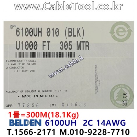 300m(롤) 벨덴6100UH (미터당 ₩4,140) 벨덴케이블 6100UH BELDEN 6100UH 2C 14AWG Plenum 자켓 CMP 블랙 > 벨덴케이블 Plenum 자켓 CMP | 품명 | 상품페이지 참고 |