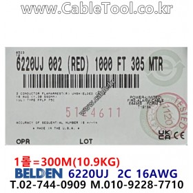 300m 벨덴케이블 BELDEN 6220UJ, 300m, 2C 16AWG, Fire Alarm Cable, Plenum-FPLP, FEP insulation, Flamarrest® jacket