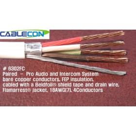 벨덴케이블 BELDEN 6302FC, 300m, 4C 18AWG Security, Pro Audio & Intercom Cable, 4 Conductor 18 AWG stranded (7x26) bare copper conductors with FEP insulation, Beldfoil® shield, Plenum, Flamarrest® jacket with ripcord.