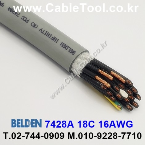 벨덴케이블 BELDEN 7428A, 300m, 18C 16AWG / 16 AWG stranded (26x30) bare copper conductors. PVC insulation . unshielded. oil- and abrasion-resistant PVC jacket.