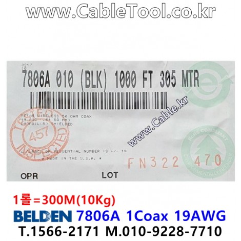 300m(롤) 벨덴7806A (미터당 ₩5,050) 벨덴케이블 7806A BELDEN 7806A 1Coax 19AWG RF 195 동축케이블 블랙 > 벨덴케이블 RF 195 동축케이블| 품명 | 상품페이지 참고 |