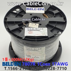 벨덴케이블 BELDEN 7807R, 검정, 300m, 1Coax 17AWG, RG58, RF200, 50 Ohm Wireless Transmission Cable, CMR/CMG, UL1666 Vertical Shaft, FT4