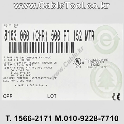 | 제조자 | 벨덴케이블 BELDEN Cable 한국총판 케이블툴㈜ www.CableTool.co.kr |